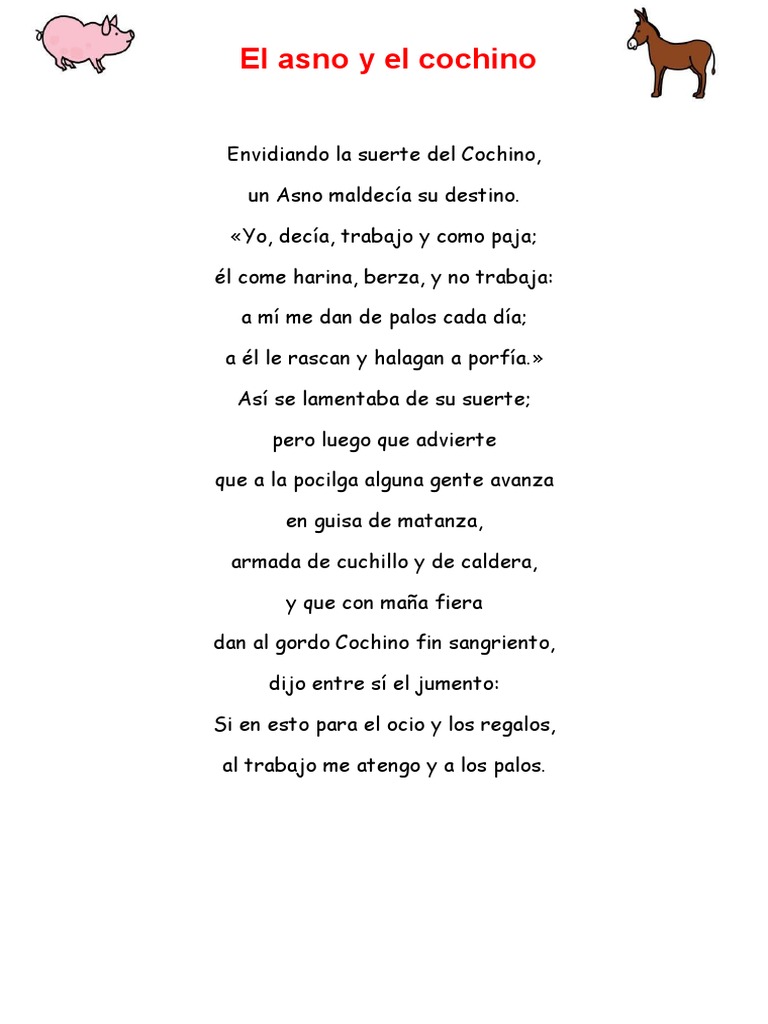 El Asno Y El Cochino Cuento - Va de un asno que tiene envidia de. El Asno Y El Cochino Cuento / − yo trabajo y como paja: