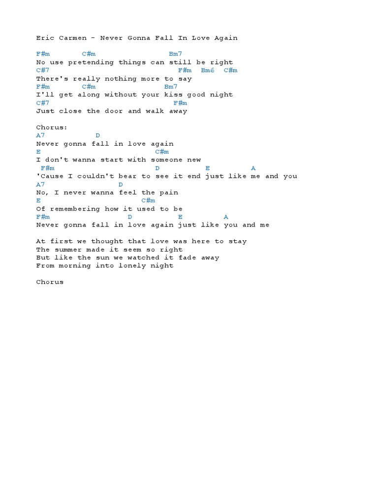 Eric Carmen Never Gonna Fall In Love Again Chords - Easy for you to take me to a star heaven is that moment when i look into your eyes.