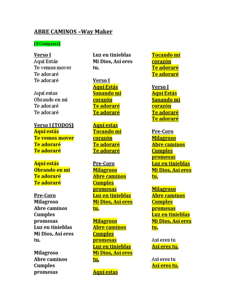 Abre Caminos Way Maker Spanish Lyrics - Ademas de la letra de la cancion sing glory en espanol, tambien encontraras sing glory traducida en portugues, en ingles, en frances, en aleman y otros.